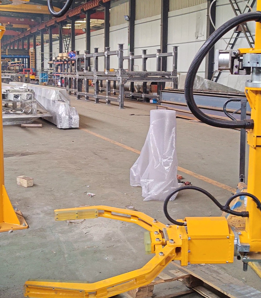 适应性:折臂吊夹具可以根据不同型号和尺寸的轮毂进行定制,满足不同客户的需求。同时,折臂吊还可以根据作业环境进行调整,确保在各种条件下都能进行稳定的搬运作业。
